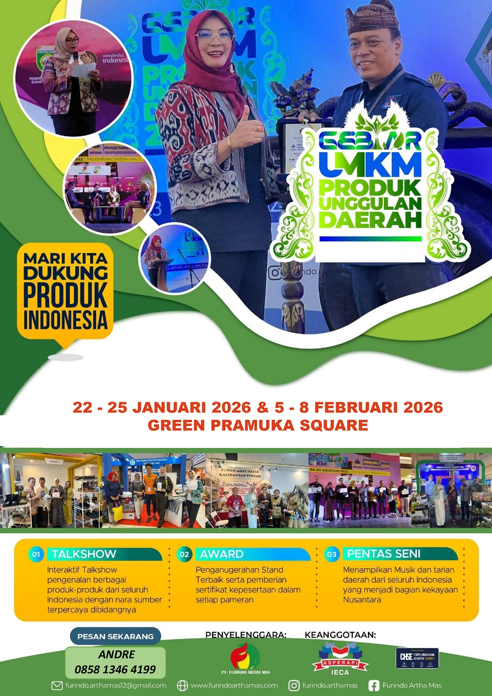 PT Furindo Artha Mas akan mengadakan pameran Road Show di berbagai Provinsi di Indonesia tahun 2026. Dimana semua pameran yang diadakan memiliki potensi dan peluang untuk meningkatkan investasi di berbagai sektor antara lain sektor Pariwisata & Ekonomi Kreatif, Sektor Perdagangan, Sektor Industri, Sektor Pertanian & Perikanan dan Sektor UMKM Produk Unggulan Daerah.